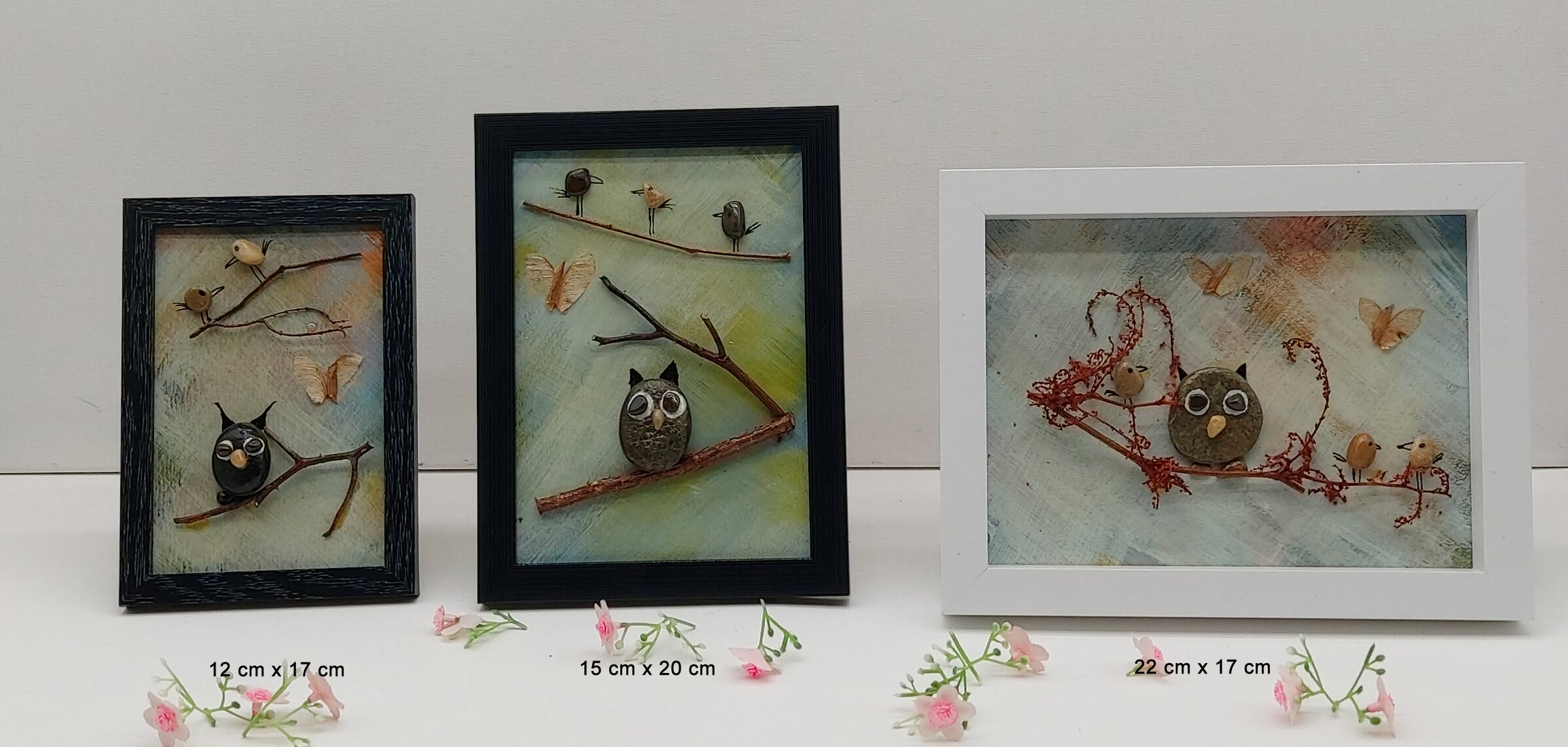 Aperçu des dimensions tableaux Chouette et papillons